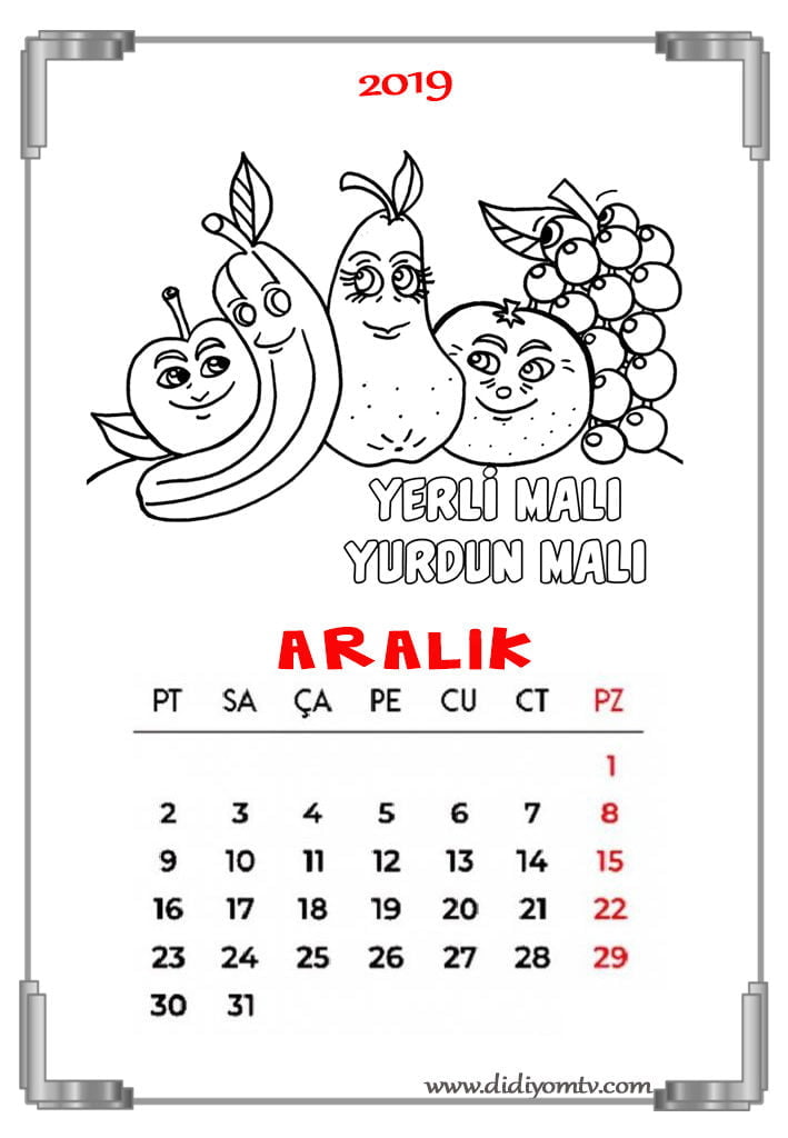 2019 Takvimi Boyama – BOYAMALI TAKVİM